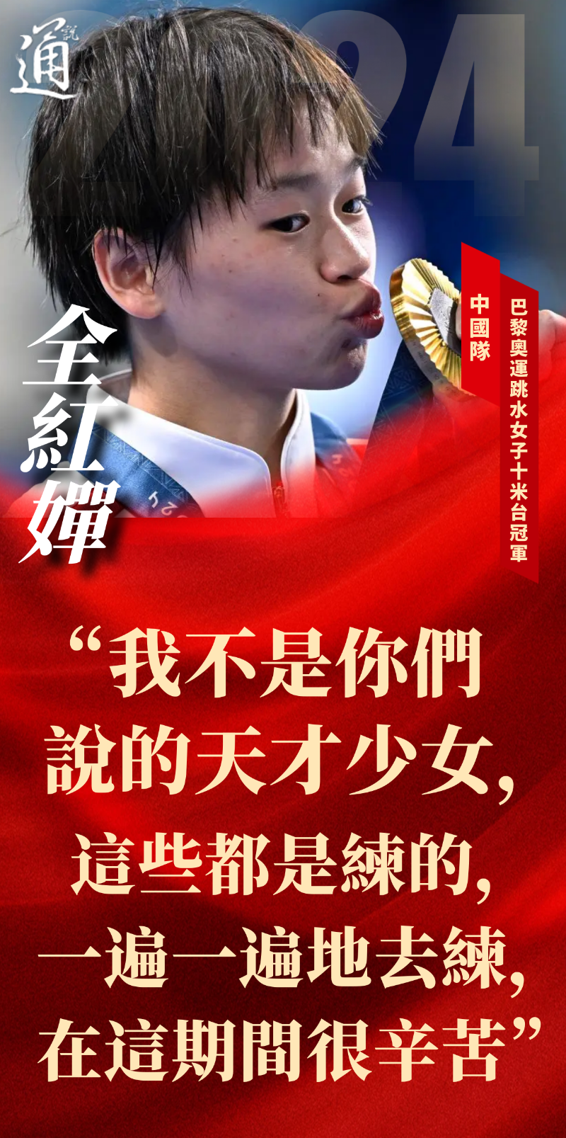 (香港新聞網製圖) 三年前,全紅嬋在東京奧運會橫空出世,以壓倒性優勢奪冠,並創造了奧運會該項目的歷史最高分。然而,出道即巔峰的她,很快面臨生長發育期的挑戰,動作一度不夠穩定,在2022和2023連續兩屆世錦賽中都輸給了陳芋汐,直到2024年多哈世錦賽才首次將世錦賽金牌收入囊中。 回首過去三年,全紅嬋坦言“挺不容易的”。“最困難的是改動作,還有體重方面。因為體重重了,然後動作也要一直去改變。” 東京奧運會一鳴驚人後,全紅嬋就被稱為“天才少女”,但她卻說:“我不是你們說的天才少女,這些都是練的,一遍一遍地去練,在這期間很辛苦。這三年裡,有自己的辛苦、淚水。拿到這枚金牌很不容易。” 讓人不可小覷的年輕小將還有澳大利亞的特魯。在6日收官的滑板女子碗池比賽中,年僅14歲的她摘得金牌。 決賽中,在前兩輪領先的是東京奧運會亞軍、日本選手開心那,直到至關重要的第三局,特魯以完美表現成功反超,最終獲勝。 “太瘋狂,也太令人興奮了。”特魯在賽後表示:“這是我首次參加奧運,當我知道自己是奧運冠軍,確實難以置信。” 她也分享在比賽中保持好心態的秘訣:“將它視為平常的一場滑板比賽,重要是和這裡所有的朋友玩得開心,然後盡我所能,最終目的是要有穩定的成績。” 展望未來,14歲的特魯稱會繼續滑滑板,享受其中的樂趣,並推動自己變得更好。