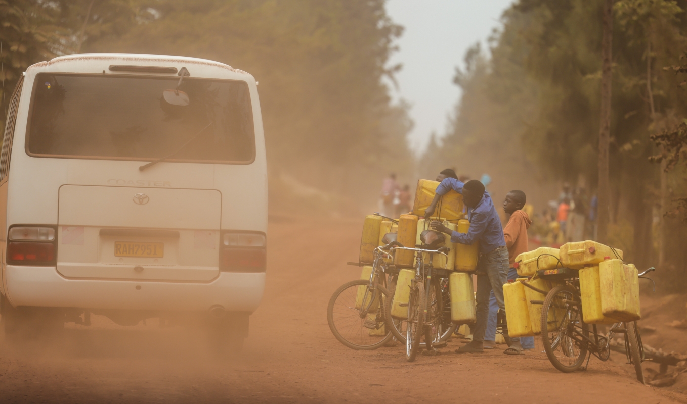 道路中央放眼望去紅土一片,由於長旱季,塵土飛揚,甚至染紅了大部分綠葉。