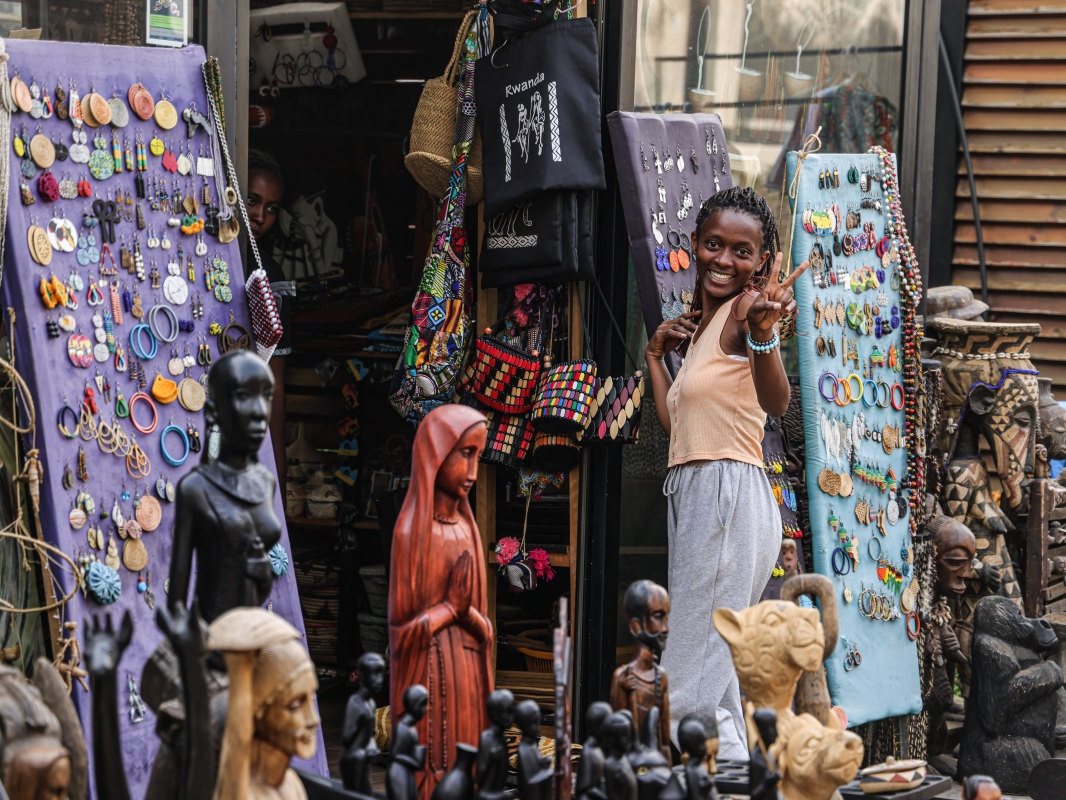 記者也來到了首都基加利的市中心,整體環境則更理想。這裡有一條名為“Imbuga City Walk”的步行街,街道不長,兩邊不少當地特色手作小店,有不少當地人來此購物和休閑,是符合當下“city walk”城市漫步的好地點。