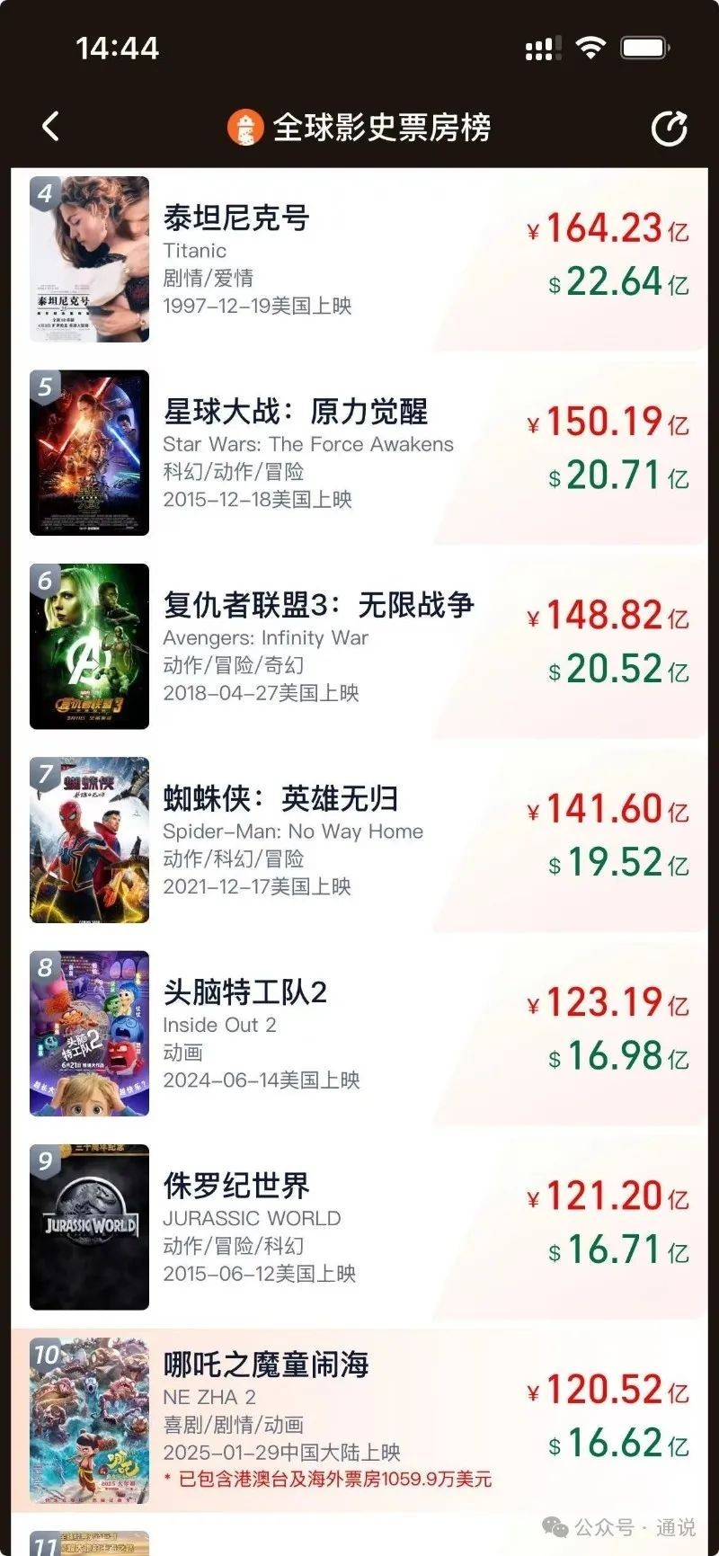 通說:不止學舞吟詩 外國網友連哪吒紋身也玩上了截至2月17日14時40分,中國動畫電影《哪吒之魔童鬧海》(以下簡稱“《哪吒2》”)總票房(含預售)突破120.52億元,超越經典動畫電影《獅子王》,位列全球影史票房榜第十名。