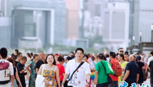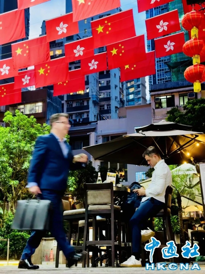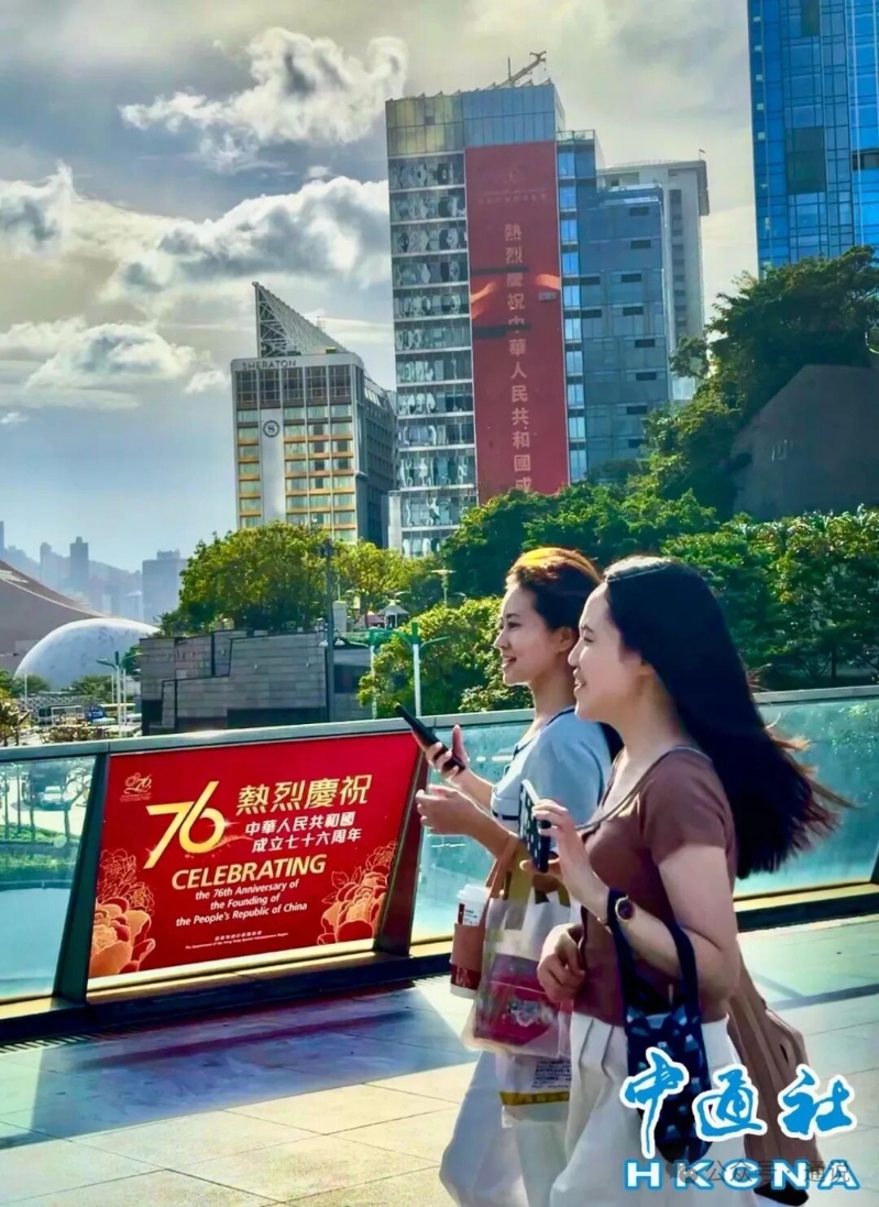 通說:國慶黃金周 香港歡迎你!國慶黃金周開啟,香港滿城裝點中國紅。10月1日早上,特區政府在金紫荊廣場舉行升旗儀式,街頭巷尾懸掛國旗、區旗,節日氛圍拉滿。