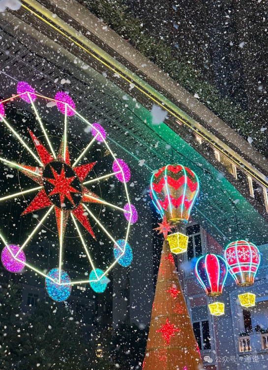 灣仔利東街12月逢周五、六及重要日子舉辦飄雪匯演。(香港中通社記者 黃璇攝) 11月下旬至2026年1月1日,灣仔利東街化身“Luminous Carnival”,讓你猶如置身歐洲嘉年華。200米林蔭步道上懸掛巨型聖誕鈴及聖誕球燈飾,入夜閃爍動人。中庭設有八米高LED幻彩聖誕樹、7.5米空中摩天輪、飛天熱氣球、旋轉木馬。每日下午5時30分起演聖誕燈光音樂匯演。12月逢周五、六及重要節日舉辦“Let It Snow!”飄雪匯演,營造白色聖誕。