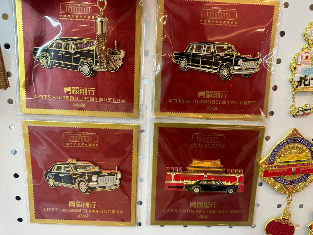 據工作人員介紹,今年的主題郵票要9月3日閱兵當天才發行,全國都能買到。不過,現場已經有了一款最新的紀念章,附送郵票樣的小海報,每天上貨三百套就馬上售罄了。櫃檯還有歷次閱兵主題文創,包括十年前的閱兵主題冰箱貼,慶祝中華人民共和國成立35周年、50周年、60周年的閱兵紅旗車冰箱貼,不少記者購買收藏,來自澳門的年輕記者說這些都沒有經歷過,沒想到現在還能買到。(完) 【編輯:譚暢】