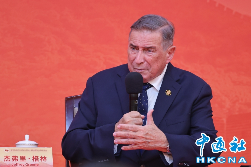 •   9月2日上午10時,中國人民抗日戰爭暨世界反法西斯戰爭勝利80周年紀念活動新聞中心舉辦第三場記者見面會,請為中國抗戰勝利作出貢獻的國際友人或其遺屬代表介紹對中國人民抗日戰爭的認識等方面情況,并回答記者提問。圖為美中航空遺產基金會主席傑弗里・格林出席記者見面會。(香港中通社記者  謝光磊 攝) 香港中通社圖片