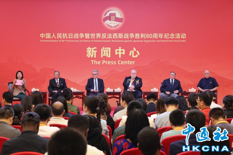 •   9月2日上午10時,中國人民抗日戰爭暨世界反法西斯戰爭勝利80周年紀念活動新聞中心舉辦第三場記者見面會,請為中國抗戰勝利作出貢獻的國際友人或其遺屬代表介紹對中國人民抗日戰爭的認識等方面情況,并回答記者提問。(香港中通社記者  謝光磊 攝) 香港中通社圖片