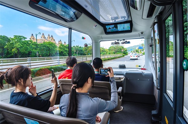 遊客在享受無人駕駛小巴。圖源:香港商報 據介紹,此次引進新車型配備360度無盲區拍攝實時高清影像、毫米波雷達、盲區激光雷達以及高精度組合定位,最高時速40公里/小時,續航里程≥200公里,可全天候在城市開放道路上進行L4級自動駕駛,充分保障乘坐的安全性和可靠性。該線路將成為橫琴智能網聯汽車對外展示的重要平台。 試乘人員紛紛表示,不僅體驗到橫琴在智能網聯汽車行業發展的超前水平,還通過超大觀景玻璃欣賞到了美麗橫琴的城市景觀,希望未來能在更多區域看見無人小巴的身影。 據了解,“橫琴口岸-長隆”線是繼“花海長廊”線開通後,橫琴又一條無人駕駛旅遊專線,路線涵蓋了橫琴·澳門青年創意谷、橫琴中央匯、橫琴新家園、橫琴碼頭、長隆海洋王國、長隆橫琴國際馬戲城、長隆飛船酒店等多處景點和商圈,為珠澳市民、遊客提供新穎智能、方便快捷的旅遊接駁路線。