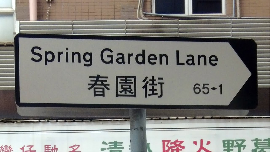 香港回歸前,街道先以英文命名,再翻譯成中文。例如“Spring Garden Street”,中文名為春園街,這翻譯乍看沒問題,其實這裡的“Spring”並非春天之意,而是指“泉水”。據史學家考究,1841年這條街道所在之處有“一道冷泉從地下湧出”,因此準確譯法應為“泉園街”,而非“春園街”。