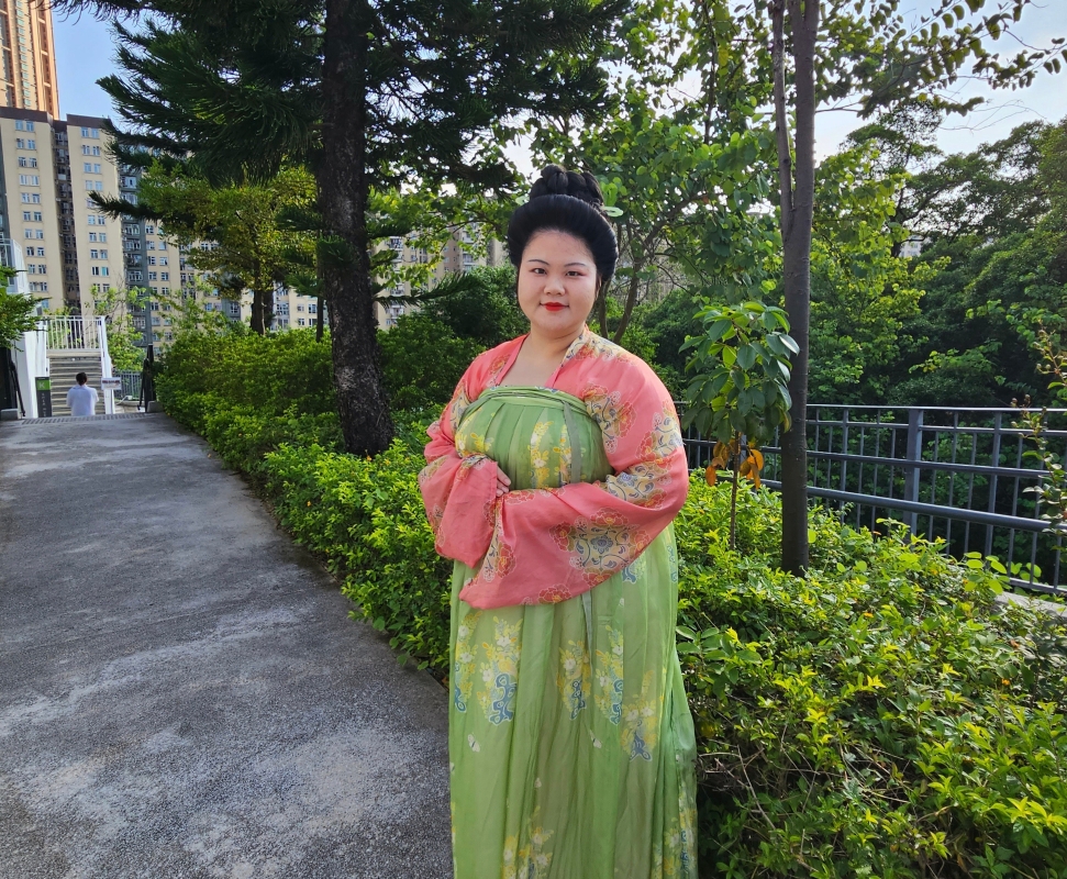 “90後”女孩鹿德音,從未想過自己能將漢服的魅力推廣給那麼多國際友人。(香港中通社記者 黃璇攝)