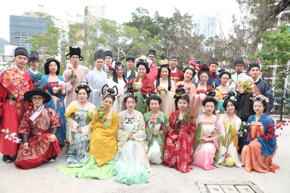 本職是在英語培訓機構當雅思老師的鹿德音,從此當起了“斜槓青年”,生活中一半的時間貢獻給教學工作,另一半時間則做漢服推廣並成立了漢服社團“國風雅集”。如今社團裡登記會員過百人,當中不少是香港人。據鹿德音介紹,會員的年齡跨度很大,最小的十七八歲,還有父母輩的加入。她眼見近年香港街頭越來越多人穿漢服,社團裡男生也多了起來,“我們至少湊個男版十二花神還是有富餘的”。