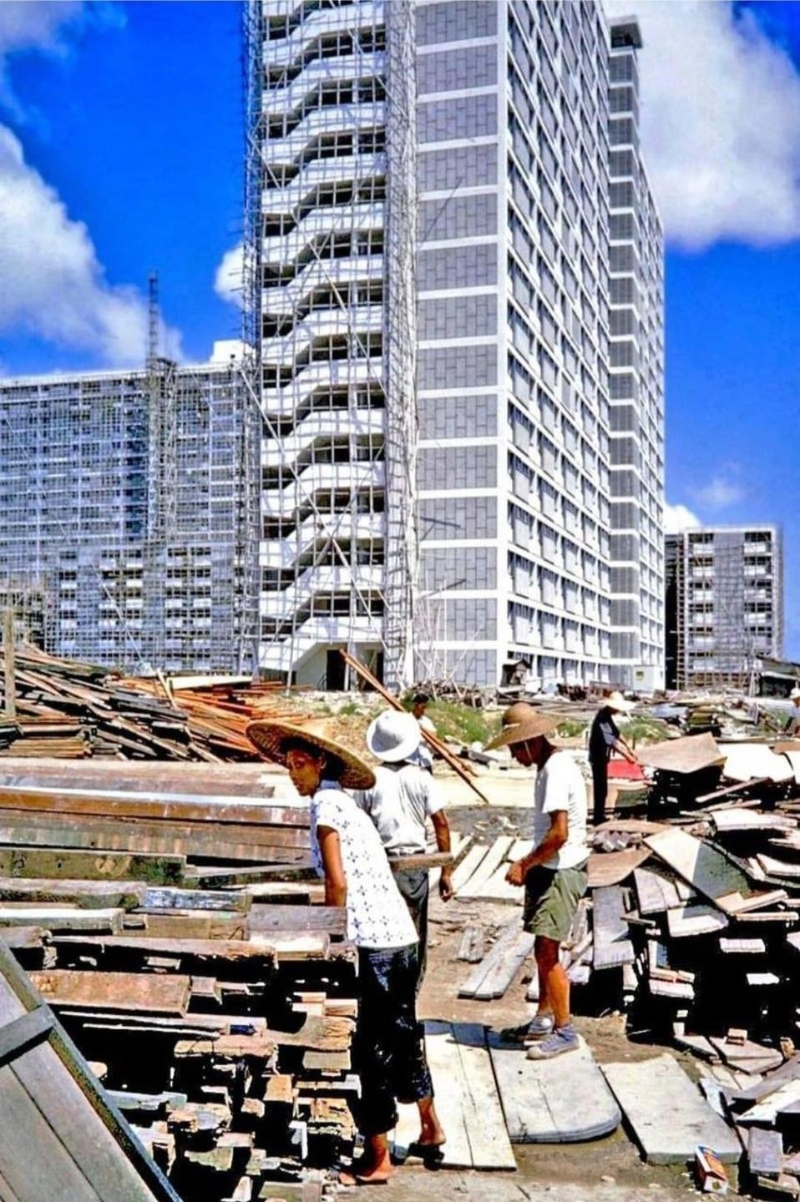 快將落成的彩虹邨。(圖片:昔日香港) 彩虹邨落成時是香港最大的屋邨,可容納43,000人。整個彩虹邨設11座大廈,3棟7層樓高、8棟20層高,大廈看起來高低錯落有致。由於該邨興建時鄰近啟德機場,樓宇受高度限制只能有20層高。