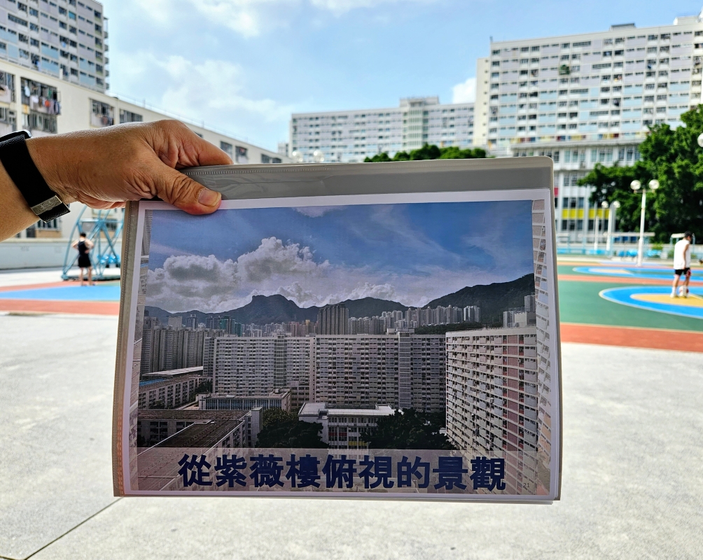 屋邨內七彩繽紛的大廈外牆,是彩虹邨的生招牌。 近年提及到彩虹邨,不少人第一時間聯想到的就是“打卡”,它的七彩繽紛大廈外牆,實在是彩虹邨的生招牌。關於經典打卡位的精彩美麗相片,早已被不少人拍攝下來;至於它的知名程度,就是連外國遊客、攝影師、甚至明星等也特意前來拍攝取景。說彩虹邨的知名度到達世界級,在彩虹邨居民湛Sir看來,一點也不過分。根據湛Sir“不完全統計”,大概十年前,彩虹邨平均每日有超過500人專程前來打卡。 湛Sir是彩虹邨的老街坊,在1962年彩虹邨初落成時就隨家人搬進來住,一直住在紫薇樓。他也是社企“街坊帶路”的社區導師,這日記者就隨湛Sir一起走進這“彩虹國度”,從細節中重新認識彩虹邨。