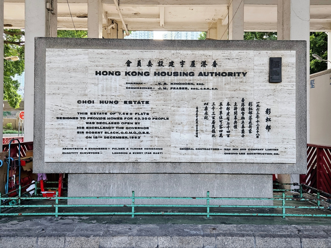 彩虹邨落成紀念碑仍豎立於屋邨入口通道。(香港中通社記者 黃璇攝)