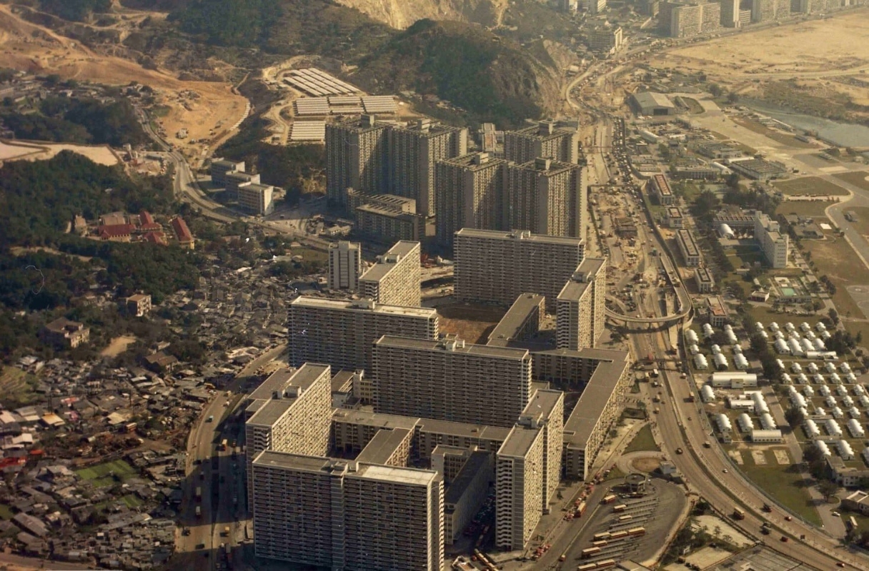 圖中遠處可見在啟德機場外剛落成的彩虹邨。(圖片:香港記憶)