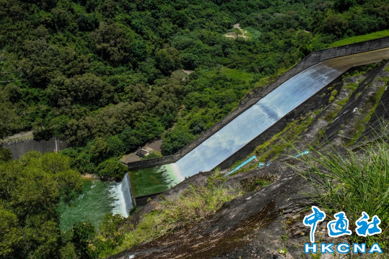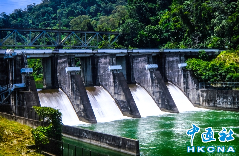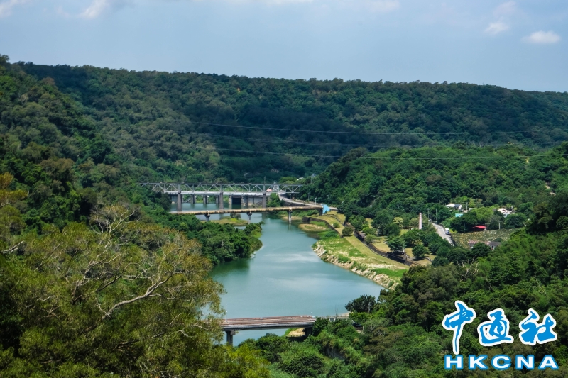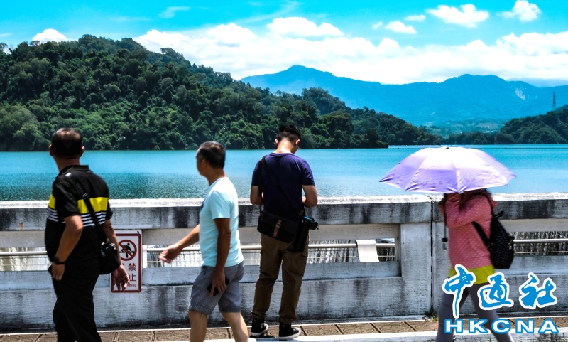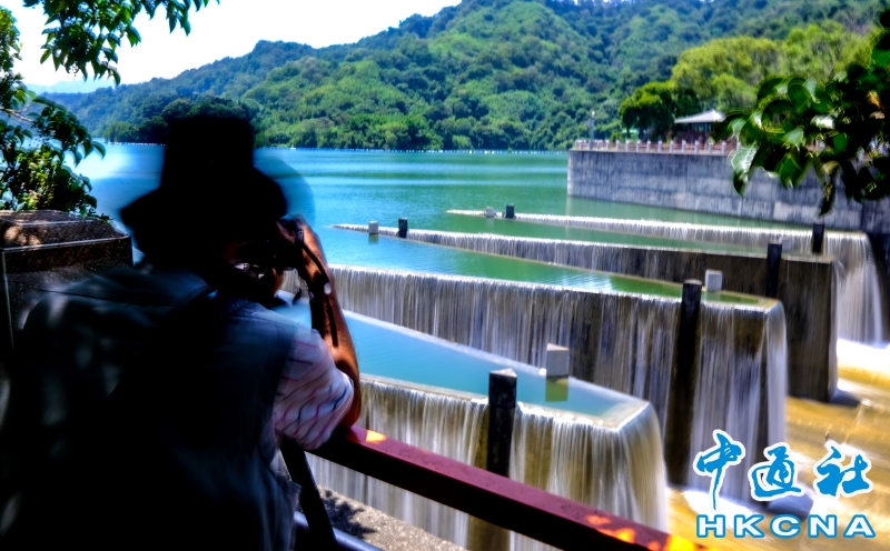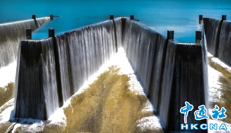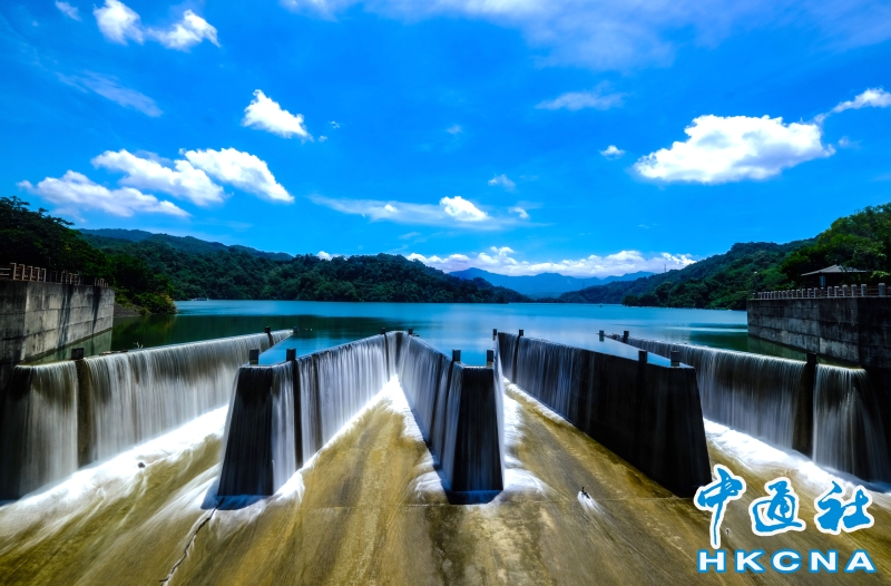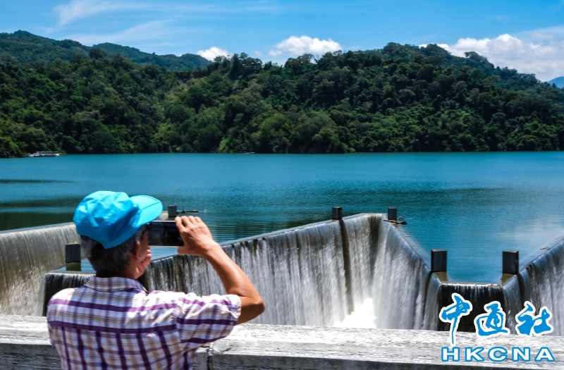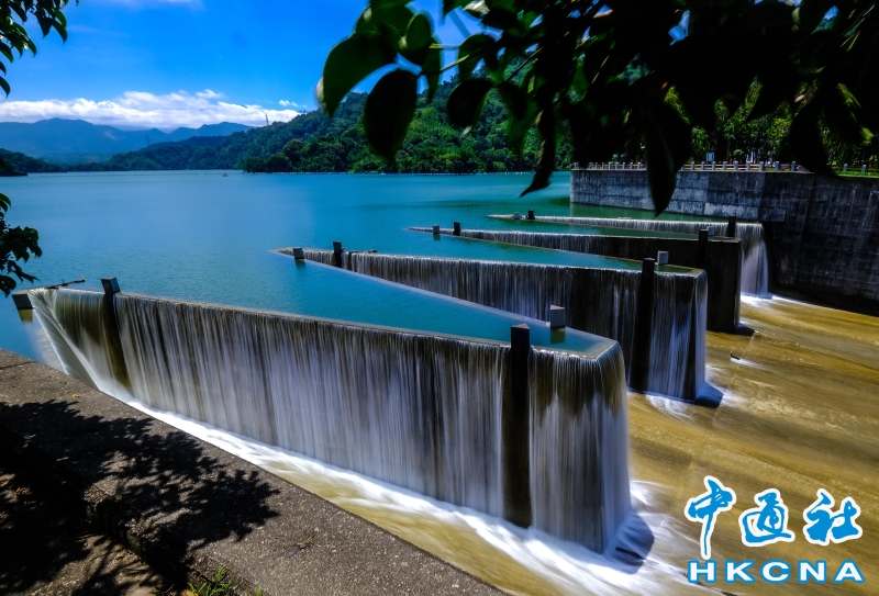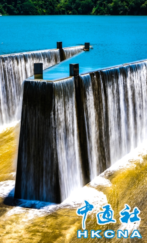 鯉魚潭水庫位於台灣苗栗縣三義鄉鯉魚潭村,因此命名為鯉魚潭水庫,是苗栗縣最大的水庫。鯉魚潭水庫具有灌溉、防洪、發電與觀光功能,主要是供給台中縣市與苗栗地區的民生、農業與工業用水。鯉魚潭水庫的鋸齒堰溢洪道,是全台唯一擁有此獨特設計溢洪道,當水庫水位滿超過鋸齒堰的高度時,水流就自然溢出,經從溢洪道排放至下游的後池堰,溢流現象非常吸睛,常吸引民眾來拍照打卡。圖為鯉魚潭水庫的溢流的水流到後池堰存放,供農業灌溉使用。 香港中通社圖片