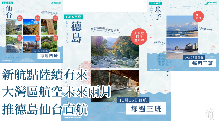 新航點陸續有來 大灣區航空未來兩月推德島仙台分享到: