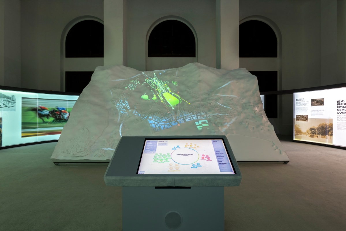 大型立體地形模型有助觀眾深入了解跑馬地的構成要素。(香港中通社記者 黃璇攝) 展覽中另一個吸引人的部分,是位於中心的大型立體地形模型,透過立體投影,讓觀眾深入了解跑馬地的構成要素。此外,展覽還設計了聲音裝置,讓觀眾沉浸在跑馬地的自然與人文環境中。這些互動設計鼓勵不同社群之間的對話與交流,強調人與環境之間的聯繫。 跑馬地的故事是香港文化的一個縮影,從黃泥涌的村落到今日的繁華地帶,這裡的每一個變化都映射出城市的脈動與人們的生活。正如展覽的策展人、大館文物事務主管鍾妙芬所言,是次展覽提供了一個新的切入點,讓觀眾從宏觀的角度,結合建築、自然及非物質文化遺產的元素來觀察城市遺產。11月23日及30日,主辦方將舉辦兩場公眾導賞團,由策展人鍾妙芬親自帶領解說,引導觀眾以全面的視角來看待城市的發展和遺產保護。(完) 【編輯:黃璇】