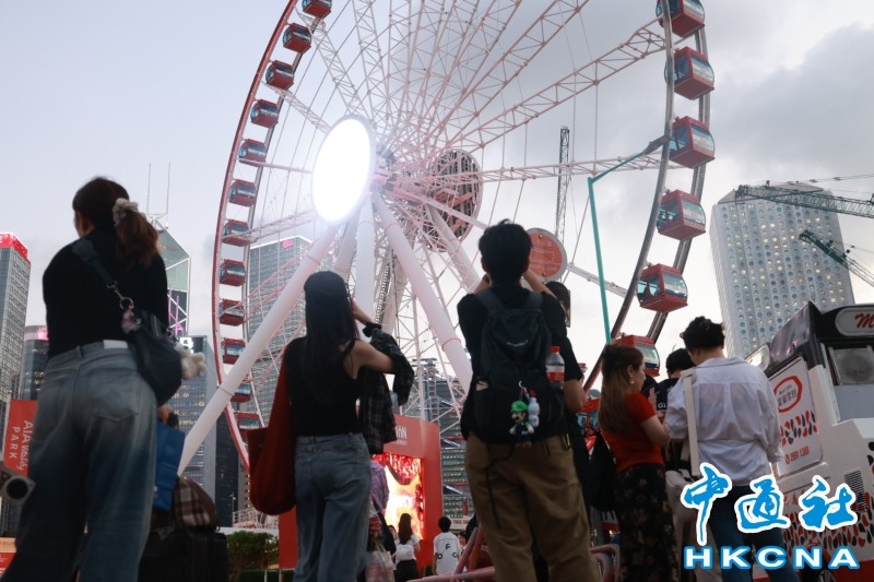 遊客在香港中環乘搭摩天輪。(香港中通社 鄧子傑攝) 香港中通社圖片
