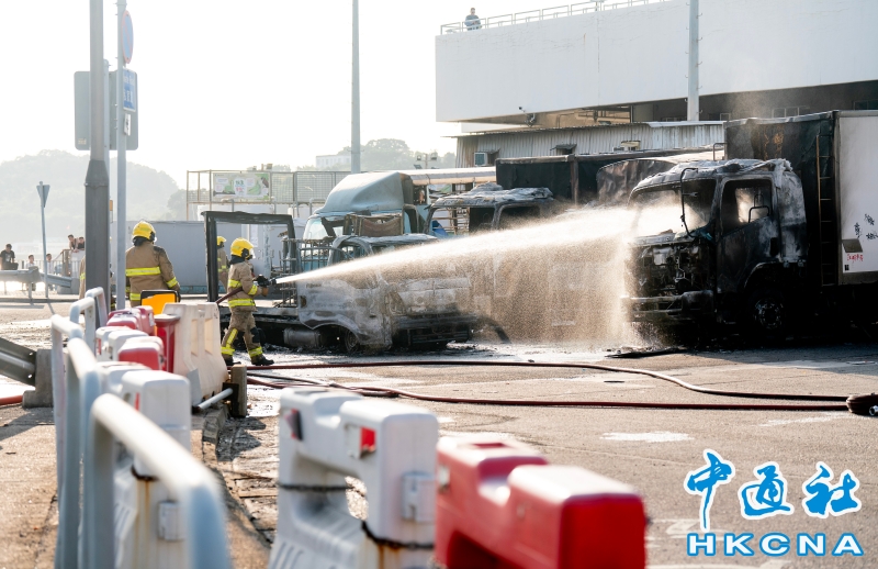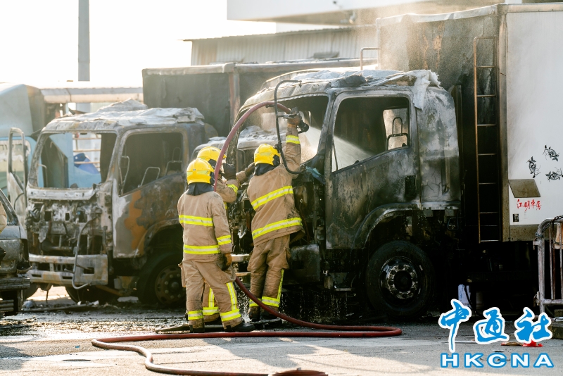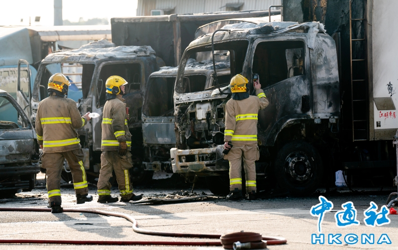 •   2月6日下午,香港長沙灣魚類批發市場及長沙灣副食品批發市場對開的欽明路8車起火,消防到場動用兩條喉及兩隊煙帽隊灌救。現場有兩男受傷,其中一名男子昏迷,被送往瑪嘉烈醫院搶救,另一名男子則清醒送往伊利沙伯醫院。(香港中通記者 陳奕啟 攝) 香港中通社圖片