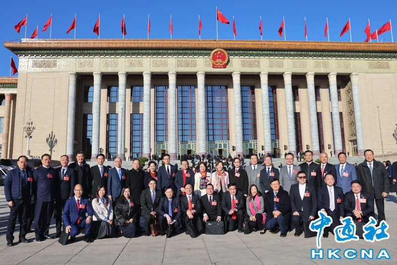 •   3月9日,十四屆全國人大四次會議在北京人民大會堂舉行第二次全體會議。圖為會議開始前,港區全國人大代表在人民大會堂前合影。(香港中通社記者 謝光磊 攝) 香港中通社圖片
