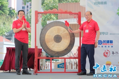 10月12日,香港太極國際學院在黃大仙廣場舉辦國際太極日,並慶祝中華人民共和國成立75周年。今年活動主題是“凝聚太極力量,融合國際最強”。圖為 國際太極日籌委會總監貝鈞奇(右)、香港中聯辦九龍工作部副部長祝小東主持典禮。(香港中通社記者許其皓攝)香港中通社圖片