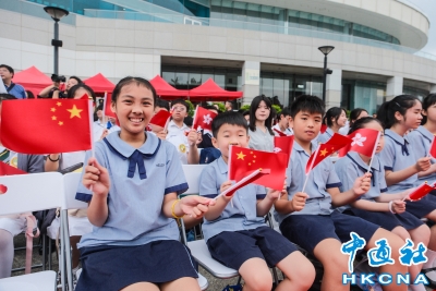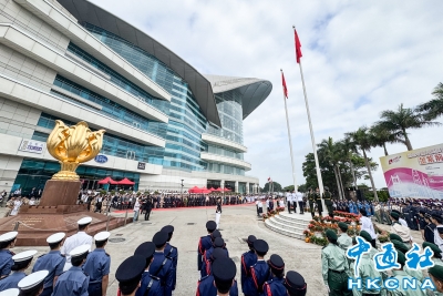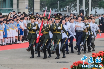 5月4日早晨,為紀念五四運動106周年及中國人民抗日戰爭暨世界反法西斯戰爭勝利80周年,香港各界青少年活動委員會於金紫荊廣場舉行升旗禮。(香港中通社記者 許其皓攝) 香港中通社圖片