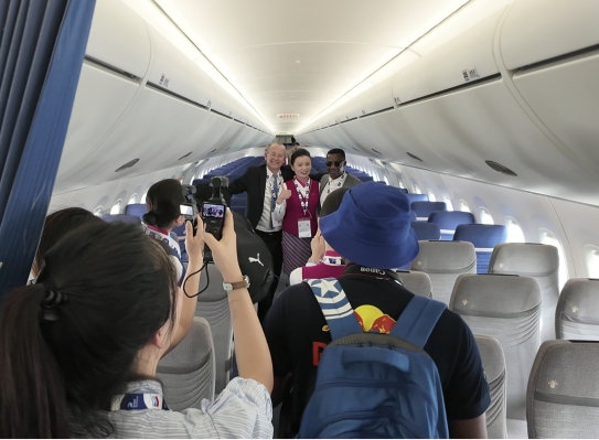 航展第一天,C919的參觀者熱情高漲,大批觀眾排起長隊等候登機參觀,機組人員詳細講解機型特點,還通過飛行表演等形式,呈現中國商用飛機發展的最新成果,并與全球航空業界深化交流互信。