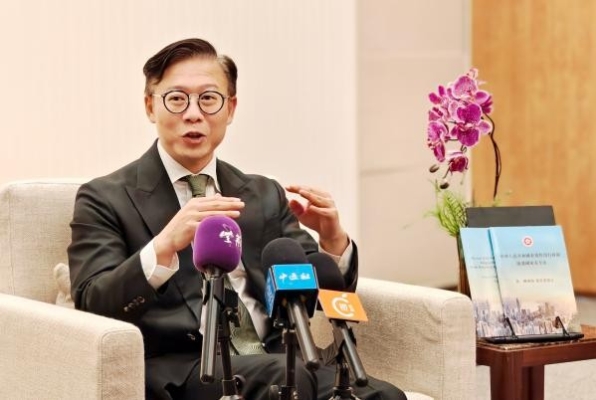 香港特區政府律政司副司長張國鈞接受記者採訪。(記者 梁嘉軒攝)