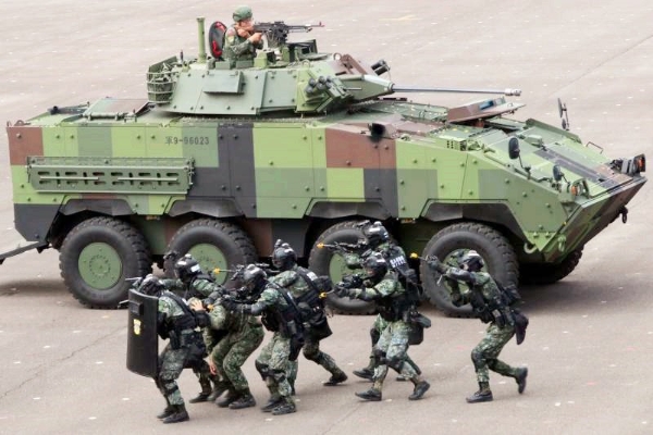 圖為台灣自製并裝備的30毫米鏈炮的CM34“雲豹”裝甲車。台灣“中央社”資料圖
