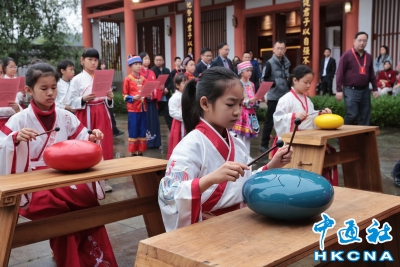 4月1日,參加2023年海外華文媒體“八桂僑鄉行”活動的30余家海外華文媒體代表前往廣西玉林市中華優秀傳統文化展示基地參訪。該基地是集文化教育、體驗、交流於一體的綜合性平台,展示內容有國家方略、領袖論述、玉林賢哲、詩詞精粹、傳統藝術、僑鄉文化等相關主題。圖為海外華文媒體代表觀看當地學生團體中華傳統樂器表演。(香港中通社記者 謝光磊 攝) 香港中通社圖片