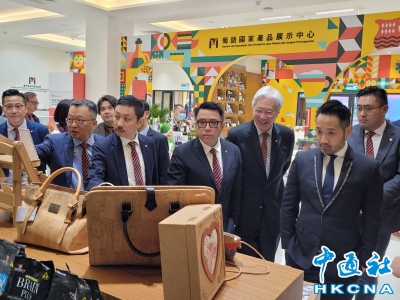 香港中小型企業聯合會會長郭志華4月27日率團到訪澳門,與澳門工商聯會會長何敬麟簽署粵港澳大灣區合作協議。在貿促局帶領下,代表團成員詳細了解中國與葡語系九國的貿易情況,澳門在當中的積極關鍵作用,並看到許多已引入澳門的葡語系國家產品。 香港中通社圖片