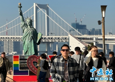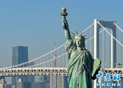 紐約的地標自由女神像世界聞名,但在日本東京也有一座複製品,座落在東京灣海濱,背景是東京地標“彩虹橋”,景色優美。東京自由女神像是為了紀念日本和法國之間的友好關係,於1998年興建並限期展覽,但因為大受歡迎,2000年決定繼續永久設置在原地。東京版的自由女神像連台基不到13米,比起總高度達93米的紐約自由女神像,是名符其實的迷你自由女神,但一樣深受世界各地遊客歡迎。(香港中通社記者 徐文峰攝) 香港中通社圖片