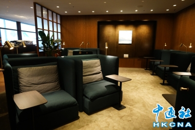 國泰航空位於香港國際機場的貴賓室“逸連堂”5月7日重開。香港中通社記者當天率先開箱,全新裝潢的逸連堂位於絕佳的35號登機口附近,加入一系列獨特的新設計,更有新菜式嚐鮮。(香港中通社記者 陳卓儀攝) 香港中通社圖片