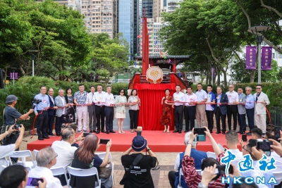 5月23日,香港潮州商會在上環海濱長廊段舉行“大潮東去 香江多嬌”香港潮州商會紅頭船風雨亭落成暨潮汕文化嘉年華啟動儀式,香港民政及青年事務局局長麥美娟、香港行政會議召集人葉劉淑儀、香港中西區民政事務專員鄭建瑩等人主禮啟動儀式。(香港中通社記者 曹文毓攝) 香港中通社圖片