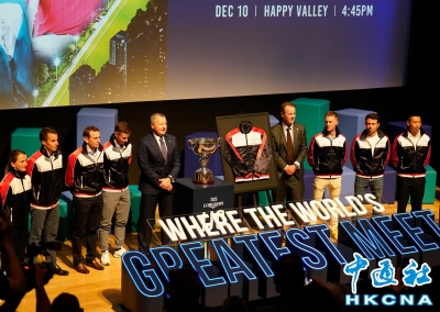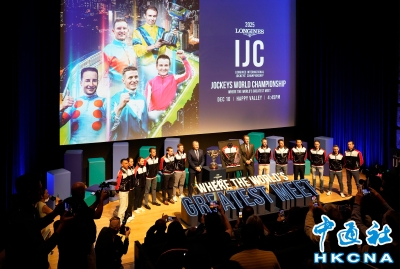 2025年浪琴國際騎師錦標賽將於12月10日在跑馬地馬場舉行。12月9日,12位參輿錦標賽的國際及本地騎師出席於大館舉行的媒體招待會,分享賽前準備與感受。(香港中通社 陳奕啟 攝) 香港中通社圖片