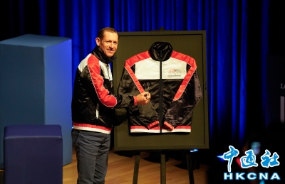 2025年浪琴國際騎師錦標賽將於12月10日在跑馬地馬場舉行。12月9日,12位參輿錦標賽的國際及本地騎師出席於大館舉行的媒體招待會,分享賽前準備與感受。圖為出戰的騎師為馬會外套簽名。(香港中通社 陳奕啟 攝) 香港中通社圖片