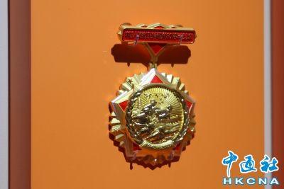 2月26日,“中國人民抗日戰爭勝利80週年紀念章”移交儀式在香港抗戰及海防博物館舉行。圖為紀念章於專題展廳內展出。(香港中通社記者 鄧梓傑 攝) 香港中通社圖片