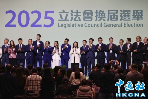 12月8日凌晨12時許,2025年香港立法會換屆選舉選舉委員會界別40席當選名單最先公佈結果。(香港中通社記者 謝光磊 攝) 香港中通社圖片