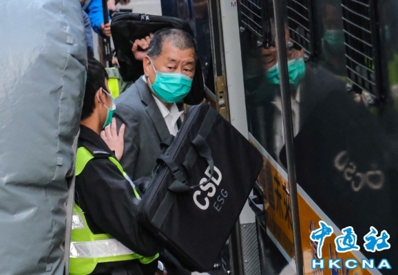 資料圖為黎智英由囚車押送。香港中通社圖片