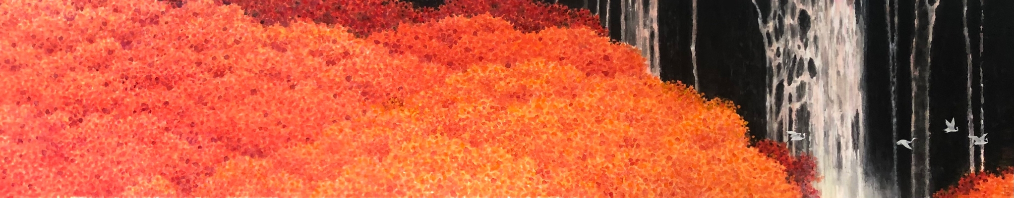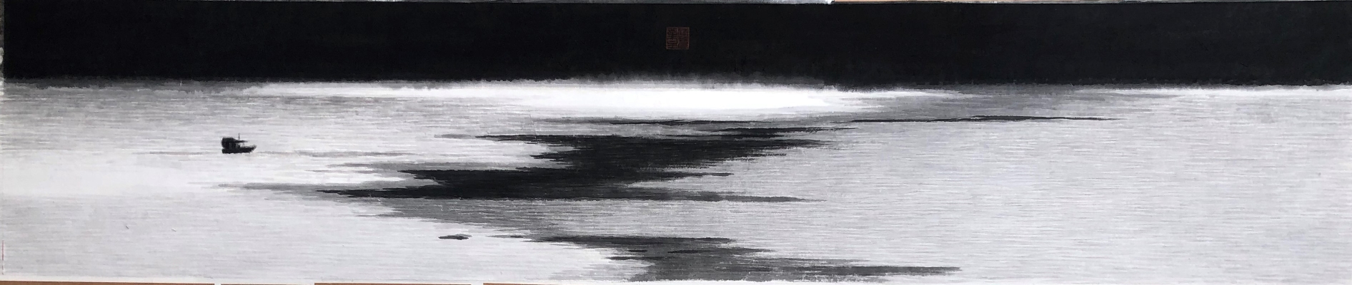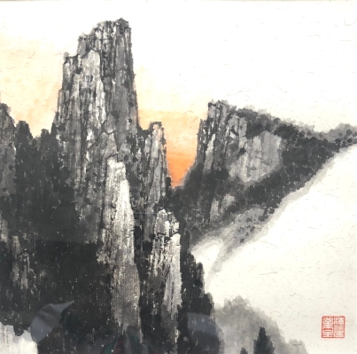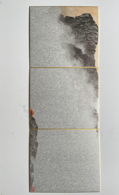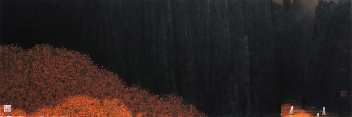 他的畫面虛實相間,為觀眾營造出深邃的餘韻,增添了作品的層次和豐富感,突出了景觀的氛圍,靜謐而微妙,空曠而壯觀,給予觀眾無限的想像和感受空間。黃孝逵的構圖謹慎而周全,他喜歡在窄長或寬橫的畫面中布局,筆下的水墨風格充滿力量感。他曾語重心長地說:“現代水墨已從一個運動變成一種觀念,那就是在中國繪畫傳統的基礎上不斷創新,推動水墨藝術的持續發展,永不遺棄傳統,永不放棄改革。”