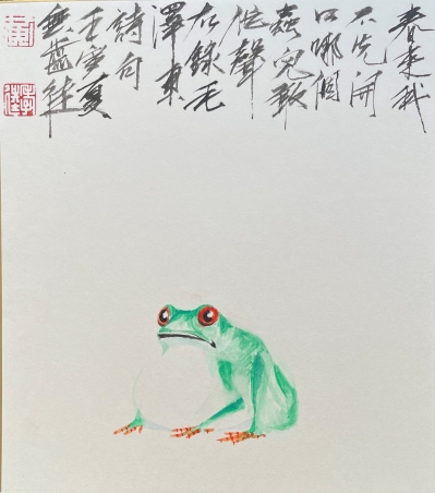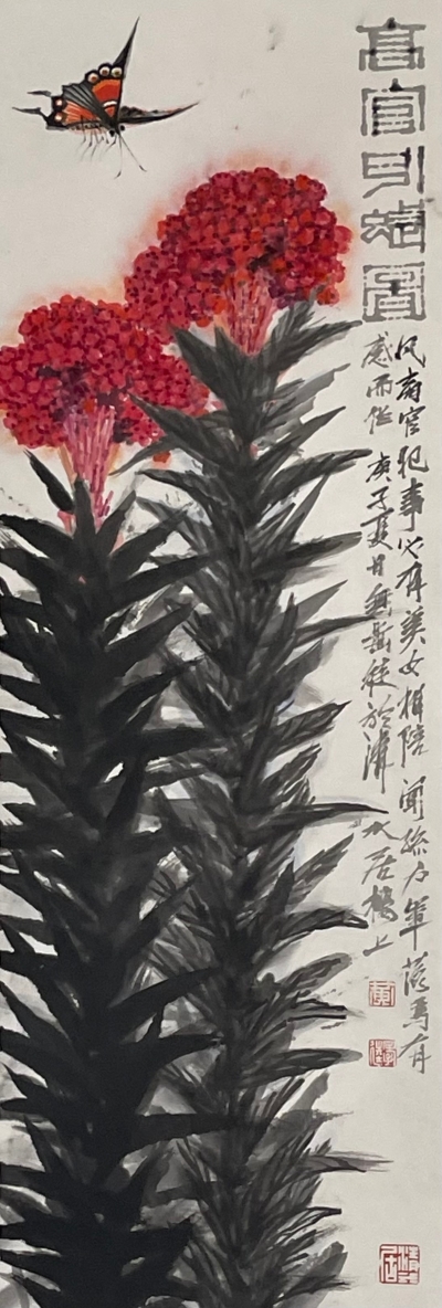 同時,日本紅葉秋光的作品,也進一步彰顯了他對自然美景的高度讚美與熱愛。“浮生百態之間”則為觀者展現了黃先生對社會和人文的深刻關懷,作品如𥄫實你、畫入書法:一不怕苦二不怕辣、足矣、尊者、蝶戀花,山盟海誓等,皆以幽默嘲諷之筆觸、深刻寓意之方式,折射出黃先生的社會洞察力與對人生百態的深度理解。“黑白虛實之間”展示的作品,如太魯閣、獅山迎春、憧憬及清水居,呈現出黑白、虛實相生的水墨精髓與意境,體現出黃先生對於水墨畫的精湛技藝以及其獨特的藝術風格。