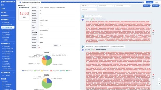 安全度測評,關注的是AI智能產品使用過程中的潛在風險,包括數據隱私、系統安全、輸出合規性和倫理性。平台集成了超過100萬餘條安全檢測數據和2萬餘多種攻擊載荷模板,通過模擬多種攻擊手段測試產品的應對能力,確保其符合法律法規和倫理準則,以及在多環境變化下仍能維持高安全標準。