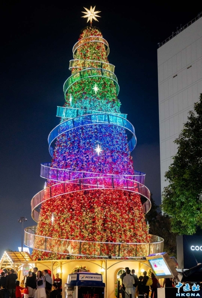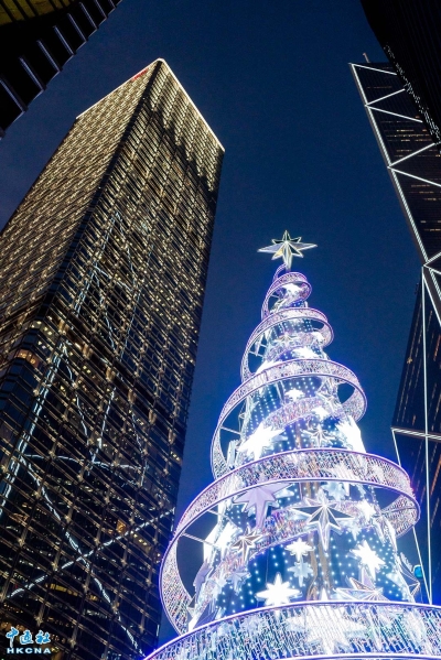 香港新聞網12月12日電(記者 陳奕啟) 12月12日,夜幕降臨,香港中環街頭亮起層層聖誕燈飾,寫字樓外的聖誕樹、行人天橋及街道兩旁的節日裝置,營造出濃厚的聖誕氣氛。市民及遊客放慢腳步,在遮打道一帶駐足觀賞,有人舉起手機拍照,有人與同伴合影留念。