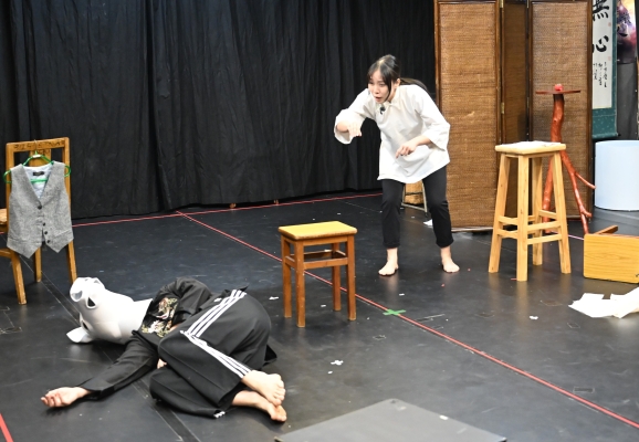 香港新聞網5月7日電 (記者 譚暢)輕輕打開浪人劇場Studio的大門,入目所見是一片黑色的排練用空地。不太大的場地內,道具、樂器等佈局有致,各式參考書籍在書架上碼放整齊。這間隱於一棟工業大廈內的劇團,將一種獨屬於香港的蓬勃生命力展現在中通社記者眼前。