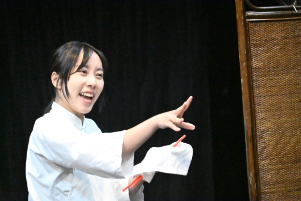 採訪當晚記者還觀看將在5月15日起在葵青劇院黑盒劇場演出的《虎豹別墅》的彩排。2008 年浪人劇場藝術總監譚孔文曾為香港話劇團以“虎豹別墅”為主題創作《虎豹別墅》,成績斐然。17年後,他將延續舊作以此為題創作全新演出。 2025 年浪人劇場《虎豹別墅》是一齣揉合個人情感及社會記憶、遊走在神話和傳記之間的“仿 Cabaret”演出,期望觀眾從娛樂中感受已消逝的詭異,建構真正的美。 誠如德國戲劇藝術家布萊希特在《戲劇小工具篇》如是說:“戲劇就是要生動地反映人與人之間流傳的或者想像的事件,其目的是為了娛樂。”