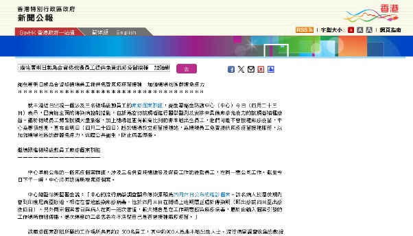 香港衛生署明起為合資格機場員工提供免費麻疹疫苗接種