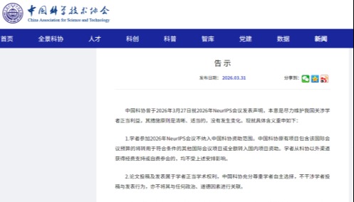 更 多- 04-01中國科協重申NeurIPS參會及論文認定政策
