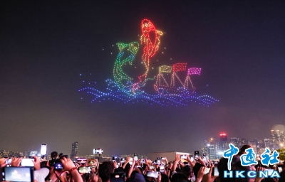 香港灣仔上空三大非遺節慶主題無人機表演吸引遊人