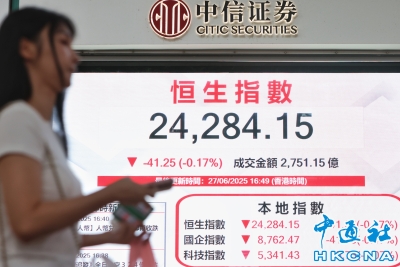 香港恒生指數跌41.25點 報24284.15點