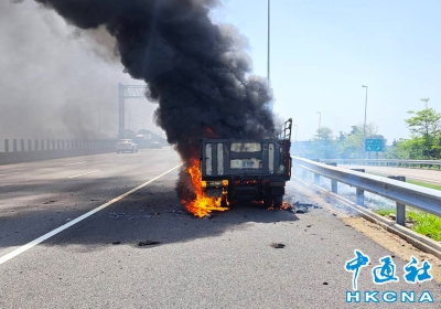 台灣一輛小貨車行駛途中忽然起火 司機及時逃生