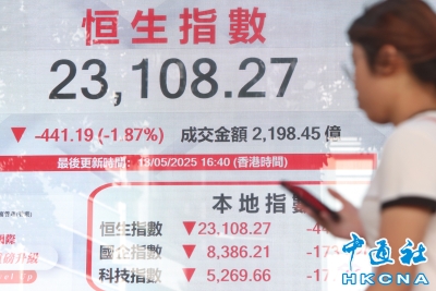 香港恒生指數跌441.19點 報23108.27點